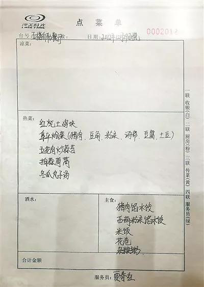 这份2012年12月29日的晚餐菜单,显示就餐地点是在逸美时光五楼自助餐厅。据了解,逸美时光酒店是阜平县的一家经济型酒店。12月30日晚,“新华视点”微博贴出这份菜单后,很快补发一帖:这份菜单的饭菜是一桌十位客人共用的。当时,这份菜单就受到广大网友关注。